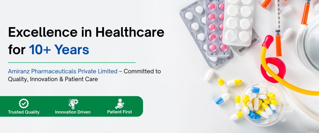 Amiranz Pharmaceuticals Private Limited is a growing pharmaceutical company dedicated to improving healthcare through innovation, quality, and trust. Headquartered in Delhi, we specialize in providing affordable, safe, and effective medicines that cater to a wide range of therapeutic needs. Our vision is to serve society with high-quality healthcare solutions.